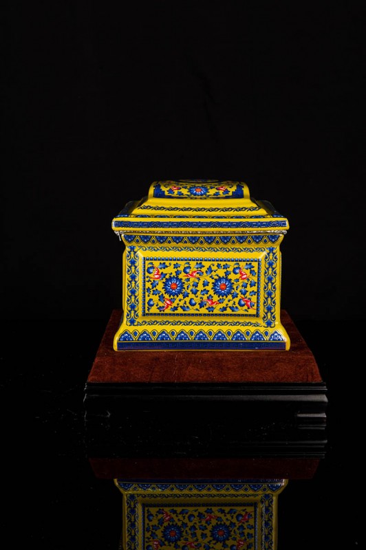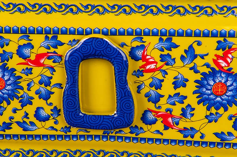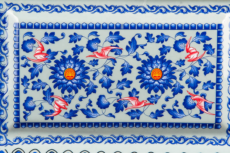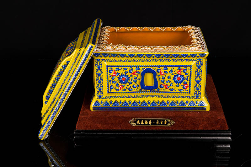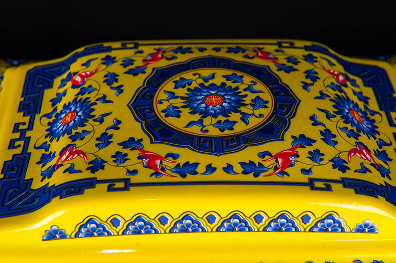 這款【福在眼前】產(chǎn)品沿用我們瓷都“景德鎮(zhèn)”具特色的青花,還有古代皇帝才能用的黃色作為底色,“纏枝蓮”、“蝙蝠”、“永生花”作為點(diǎn)綴,整體給人感覺特別典雅以及文藝。產(chǎn)品上繪上“蝙蝠”(寓意福到)盒“永生花”(寓意生命的永恒、眼睛的形狀)顧名思義“福在眼前”。尺寸:300x230x210mm