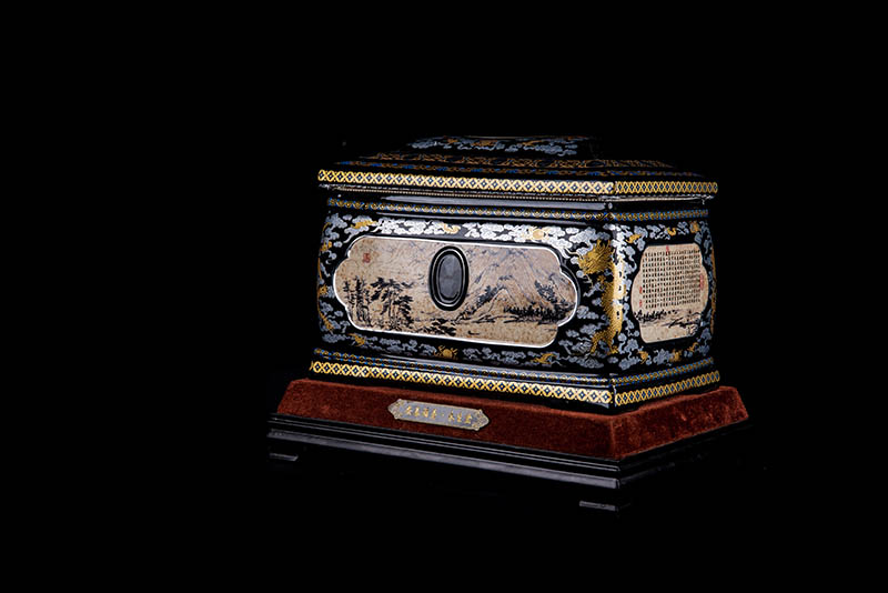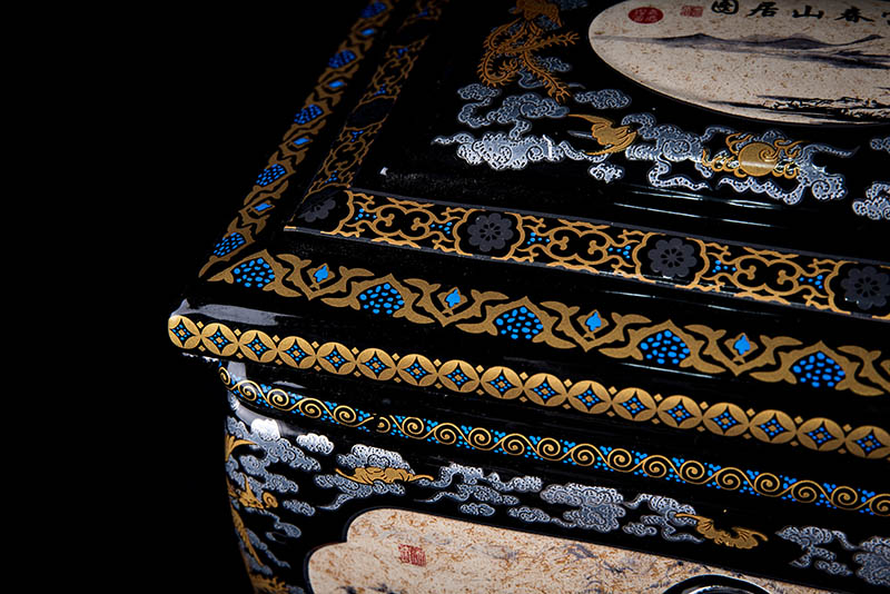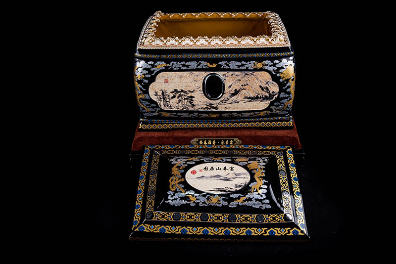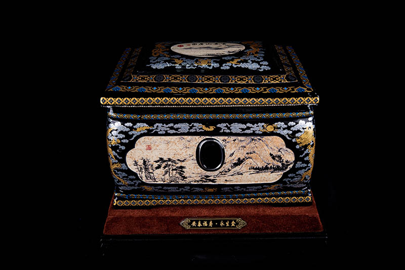 景德鎮(zhèn)安泰福壽陶瓷有限公司,永生盒系列之《富春山居圖》:本款產(chǎn)品是與浙江省杭州市桐廬殯儀館共同開發(fā)設計,采用中國十大傳世名畫之一《富春山居圖》作為主要背景,配之以“祥云”、“龍鳳”,“蝙蝠”加以點綴,圖案以浙江省富春江作為背景,80%為桐廬境內(nèi)富春江景色,富春山居圖被譽為“畫中之蘭亭”,對于桐廬殯儀館而言,這更是一種家鄉(xiāng)情懷,表達了對于藝術(shù)不懈的追求,也是桐廬人民引以為傲的佳品。尺寸:340x230x250mm